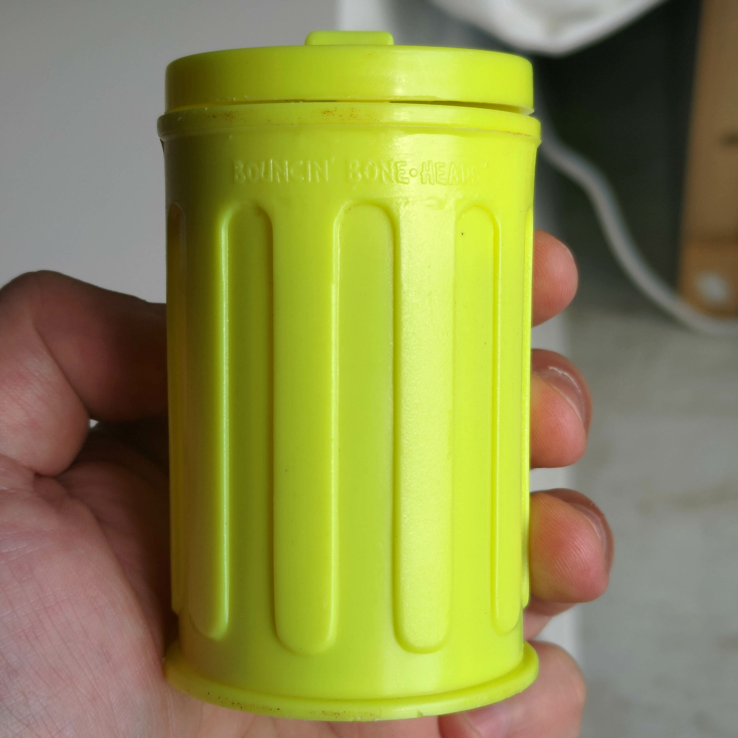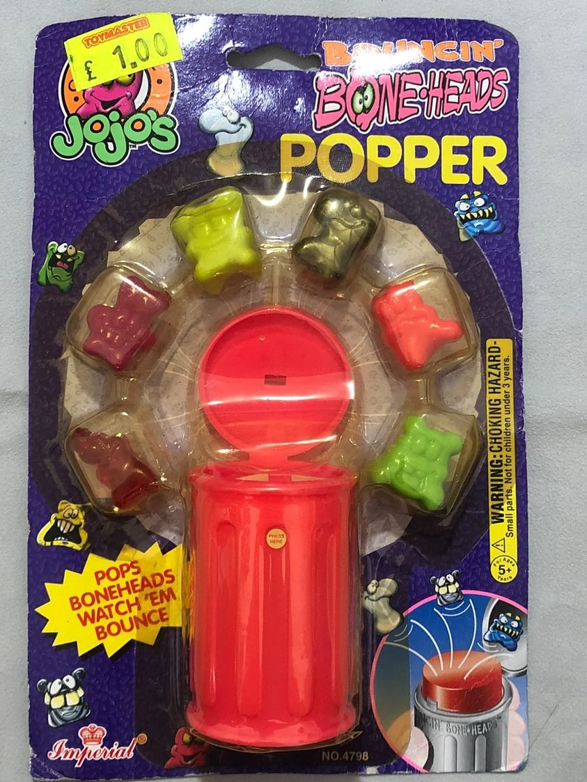 Released by Imperial Toys, the “Bone Heads Popper” is plastic trash can that is used to eject Jojo’s in the air.