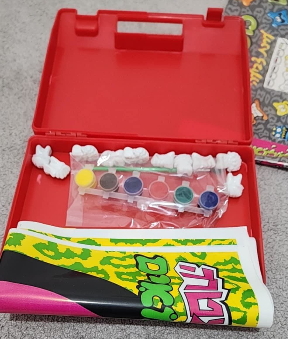 It allowed kids to paint included Jojo’s in various ways. The kit included 10 white Jojo’s, a paint brush, six little paint pots of various colors (yellow, brown, purple, red, green and blue) and a play mat.