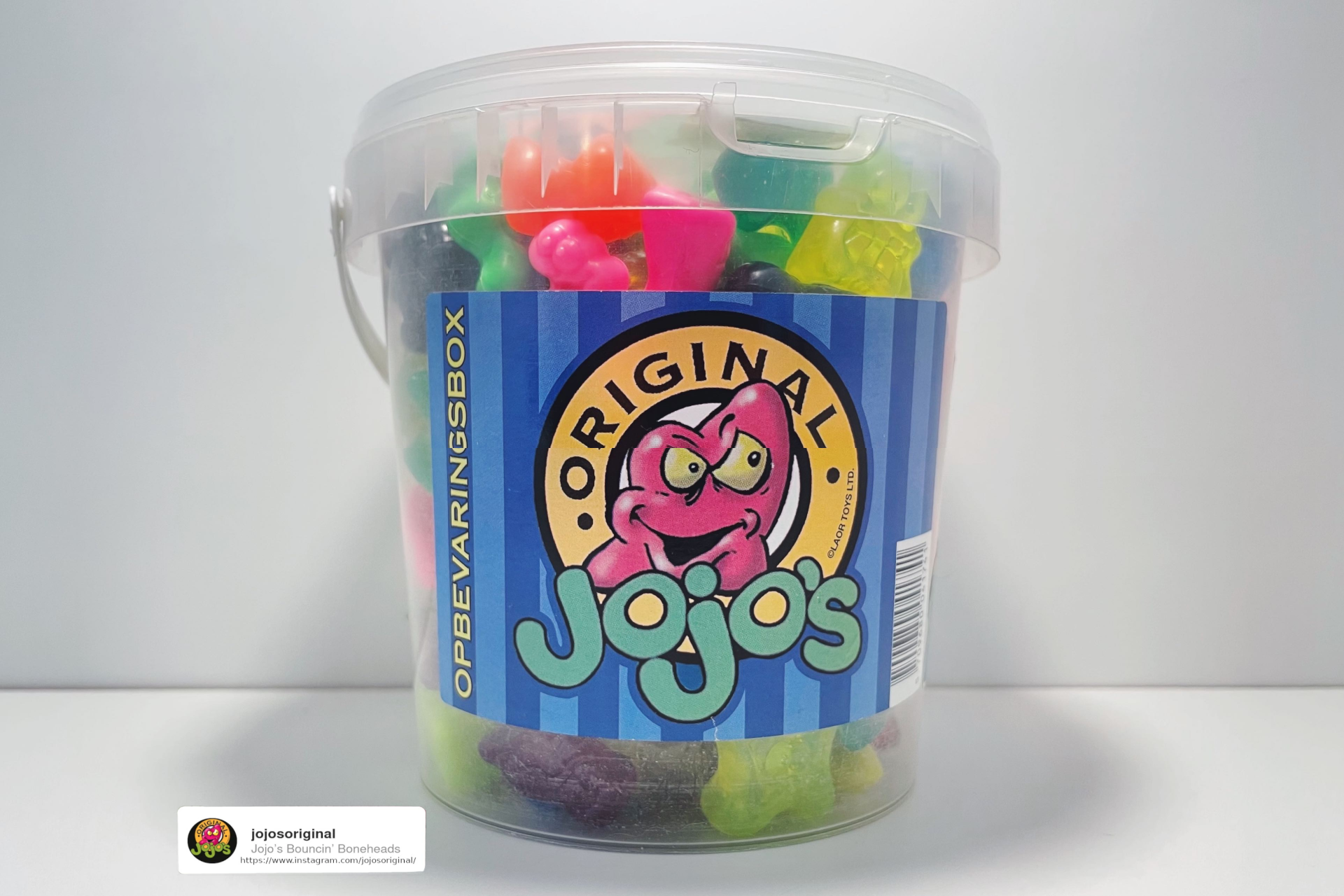 The inscription on the side simply means “storage box” in danish. This bucket could have been a merch and not a regular Jojo’s product.