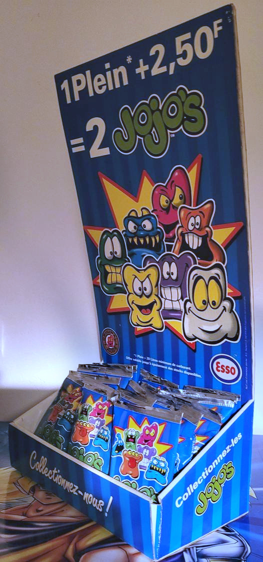 Displayed in Esso gas stations. Filling your car tank and adding 2,50F ($0.5) gave you a Jojo’s Pack.